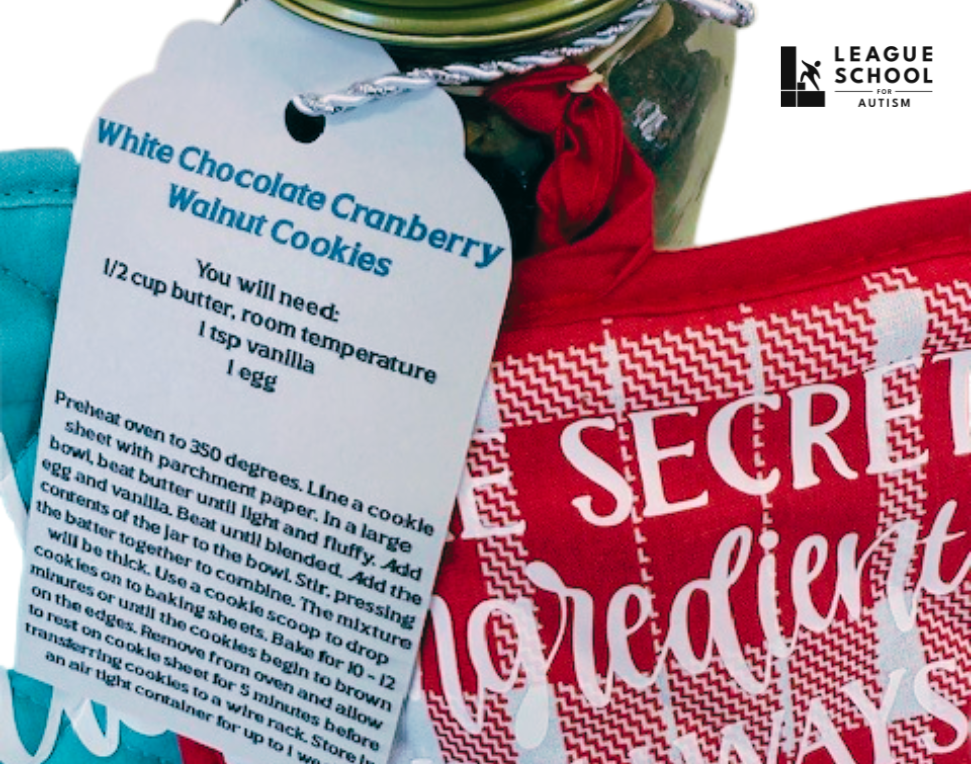 Bake up a batch of White Chocolate Cranberry Walnut cookies with this jar of baking ingredients. Each jar includes dry cookie ingredients, a recipe, and baking instructions, as well as a themed oven mitt. Choose from Red "Life if short lick the spoon," Blue "Baking up memories," or Red "The secret ingredient is always love" oven mitts. These Cookie Baker Jars are carefully crated by Vocational students and include unique variations. This item cannot be shipped due to the careful layering of ingredients.